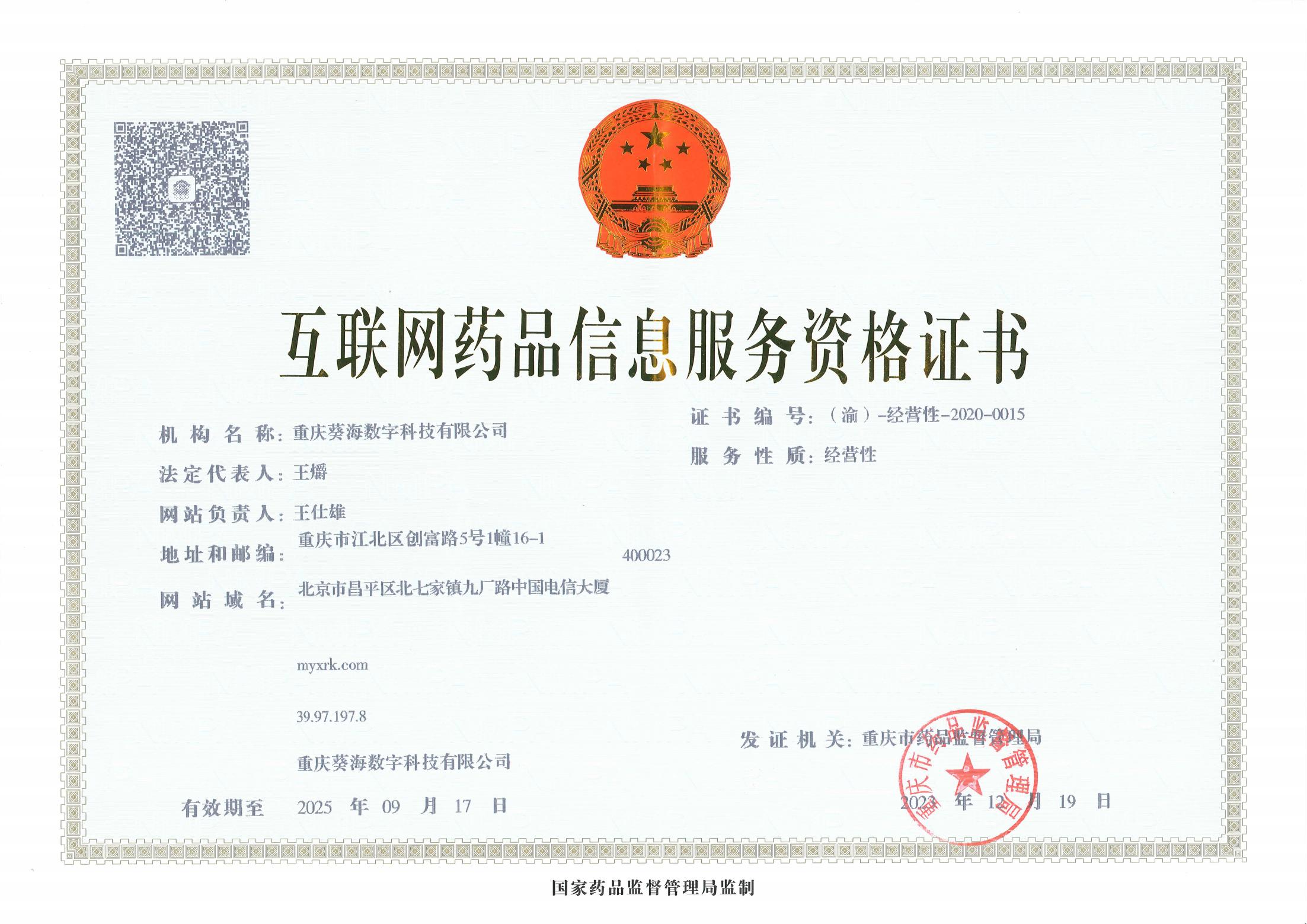 09月,獲得互聯(lián)網(wǎng)藥品信息服務(wù)資格證書(shū);