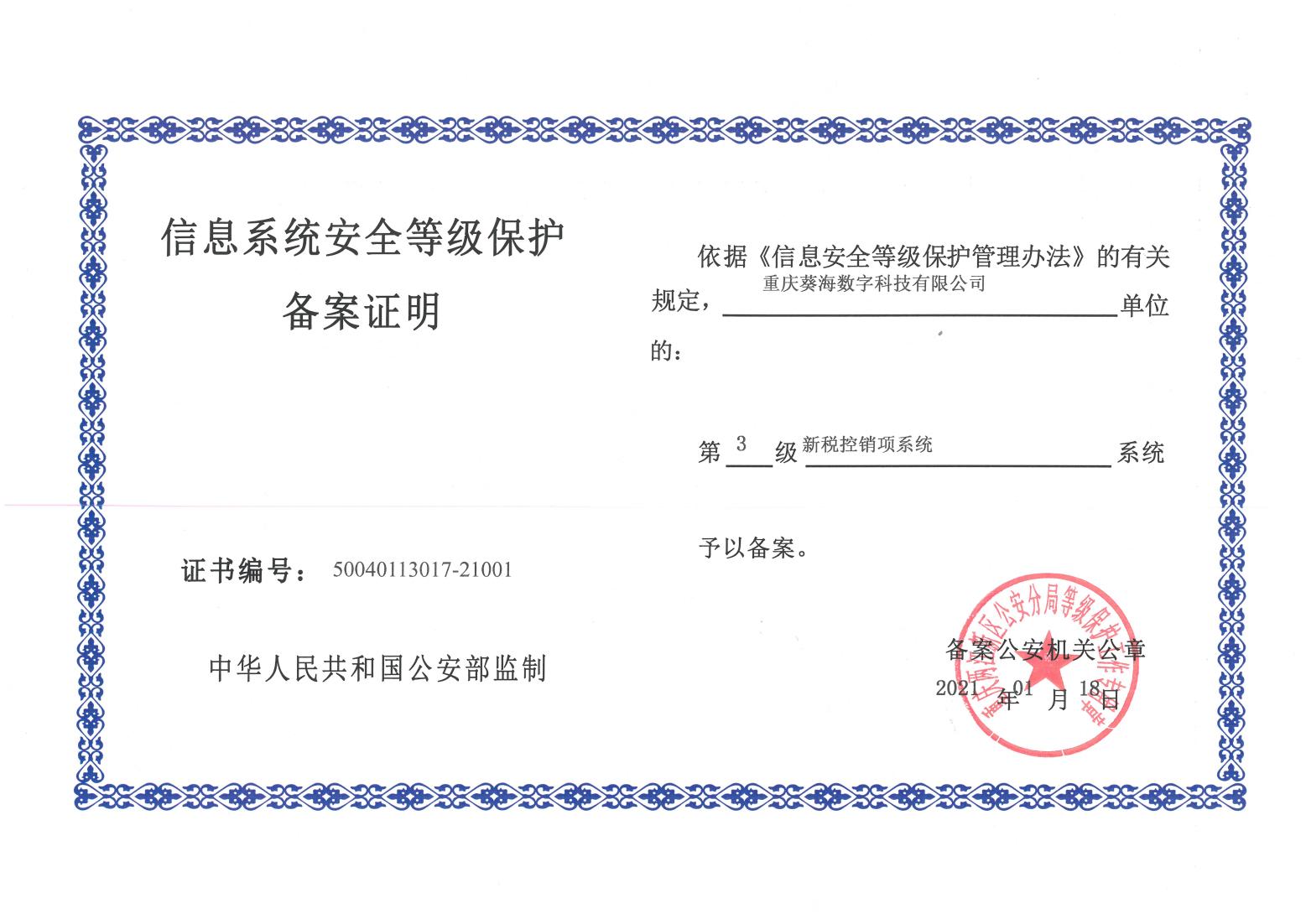 01月,獲得公安部等保三級(jí)證書(shū);